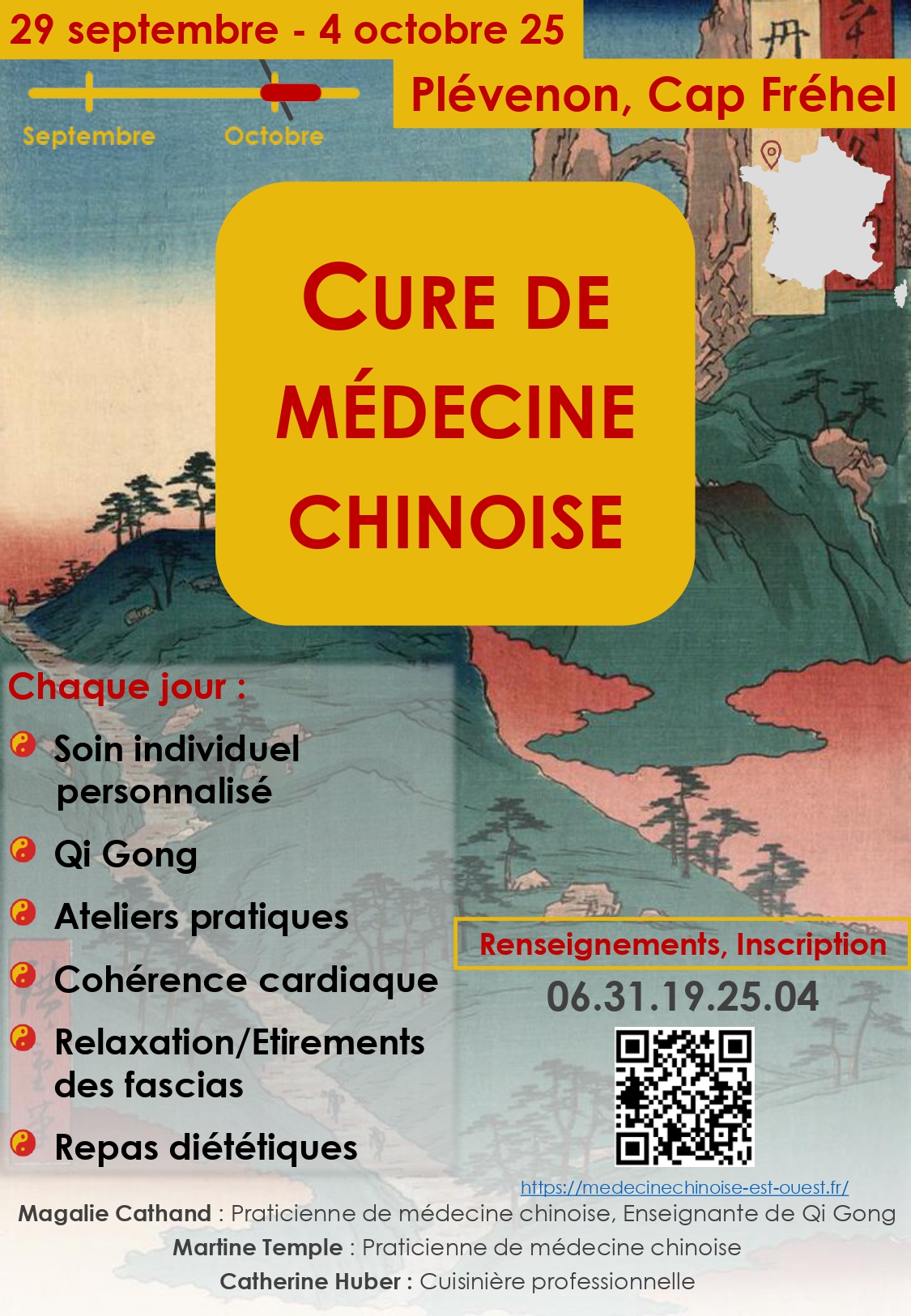 « Au retour de ma cure mes amies m'ont dit avoir rajeunie, la peau plus éclatante, et surtout le moral gonflé et la pêche. Le bon enseignement, les bons soins adaptés à nos pathologies suivis des repas "à la mode chinoise" nous requinquent. Sans parler de l'ambiance cent pour cent douceur et bienveillance. Je reviendrai. »